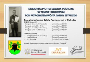MEMORIAŁ PIOTRA DAWIDA PUCHLIKA W TENISIE STOŁOWYM POD PATRONATEM WÓJTA GMINY SZYPLISZKI